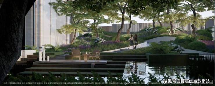 通过景观设计,将小区景打造成了立体台地花园,设置缓坡、下沉式花园、台阶等,让整体景观表现出立体层次感,错落有致。
