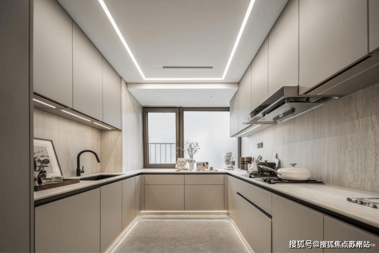 以建面约193户型为例,卫浴设备是采用国际大品牌如唯宝、高仪、卡德维等,厨电品牌采用嘉格纳,全套配置油烟机、灶台、洗碗机、双开门冰箱、蒸烤一体机等,同时装配德国美诺洗衣机烘干机套装。