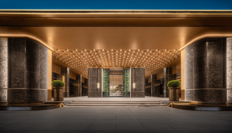 项目总占地面积约 XX 亩,总建筑面积约 XX 万㎡,容积率为 1.9.是区域内难得的低密全龄社区,充分保障了大家庭的居住舒适度与私密性。整体规划涵盖洋房、小高层等产品形态,总户数约 500 户,社区规模适中,既保证了浓厚的家庭生活氛围,又便于物业精细化管理。建筑风格采用新中式风格,将传统中式亲情元素与现代建筑美学相结合,线条典雅流畅,外立面选用米白色真石漆搭配深灰色金属线条,质感十足,呈现出沉稳、大气、温馨的视觉效果,契合大家庭的居住格调。
