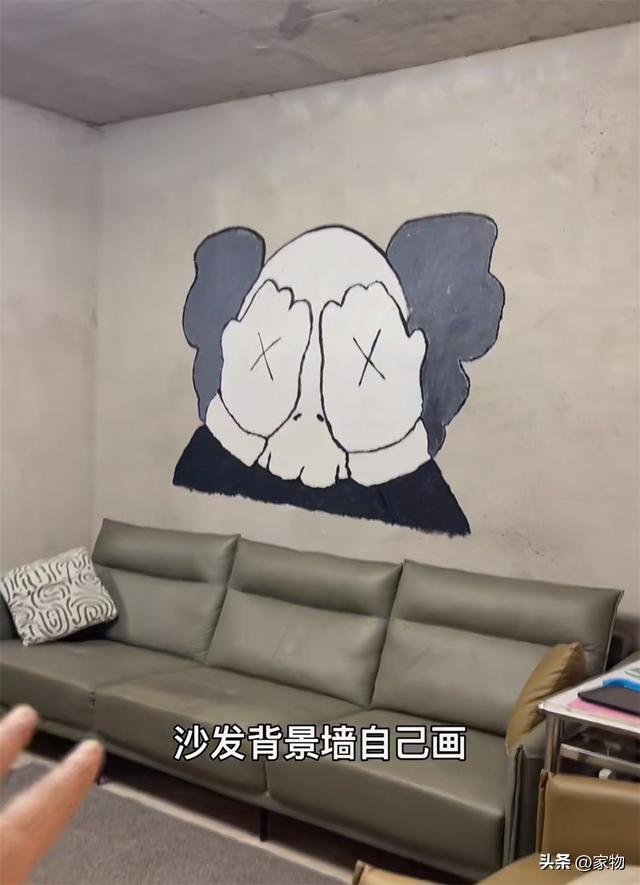 为了省钱,客厅背景墙都是妻子自己手绘的,简简单单一个图案,既给水泥墙面增添了几分生动个性的风格,又不用像买挂画一样花费上千,不得不让我佩服这位湖南妹子的动手能力,真的绝了!
